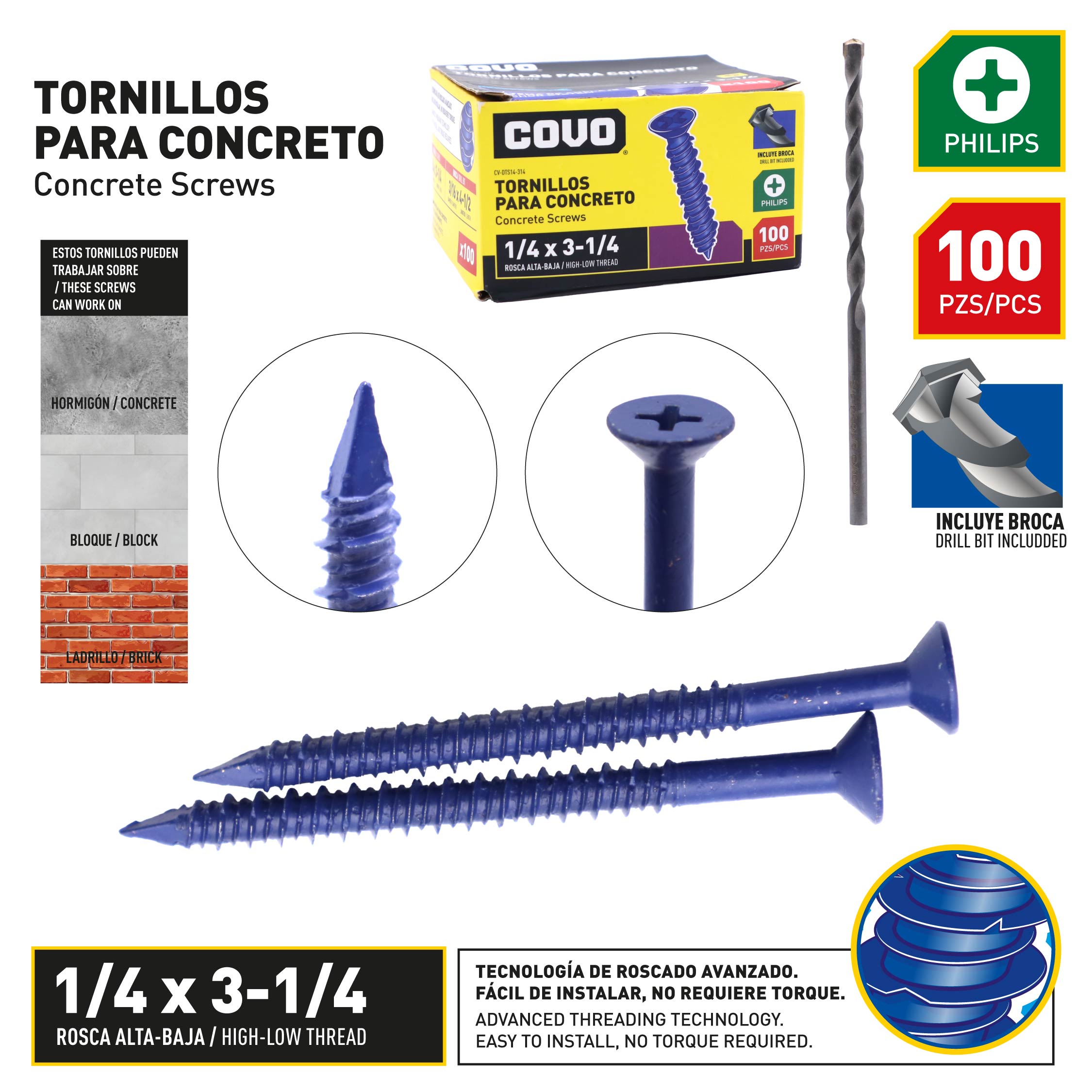 9. COVO 1/4 in. x 3-1/4 in. Phillips Head Concrete Screw