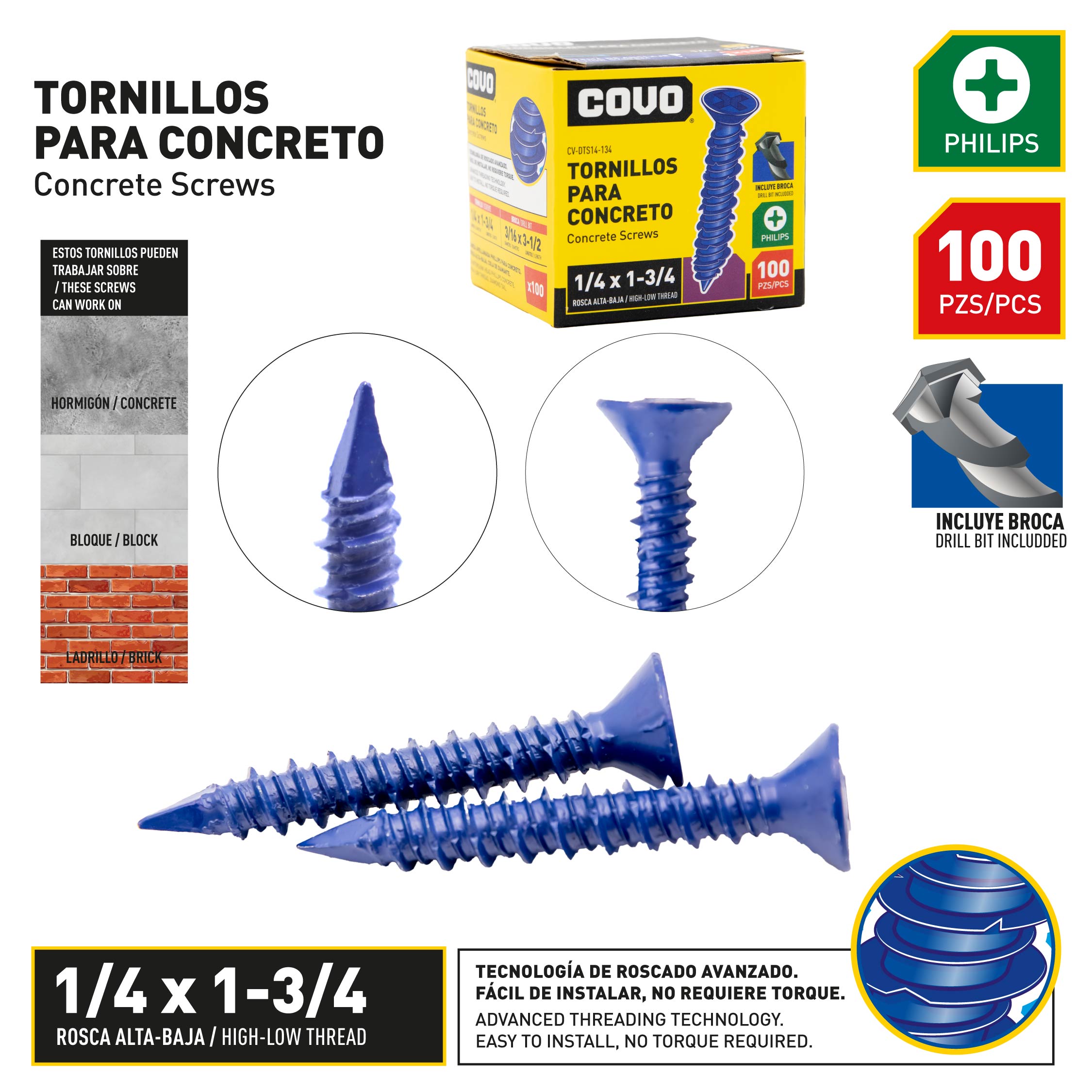 9. COVO 1/4 in. x 1-3/4 in. Phillips Head Concrete Screw