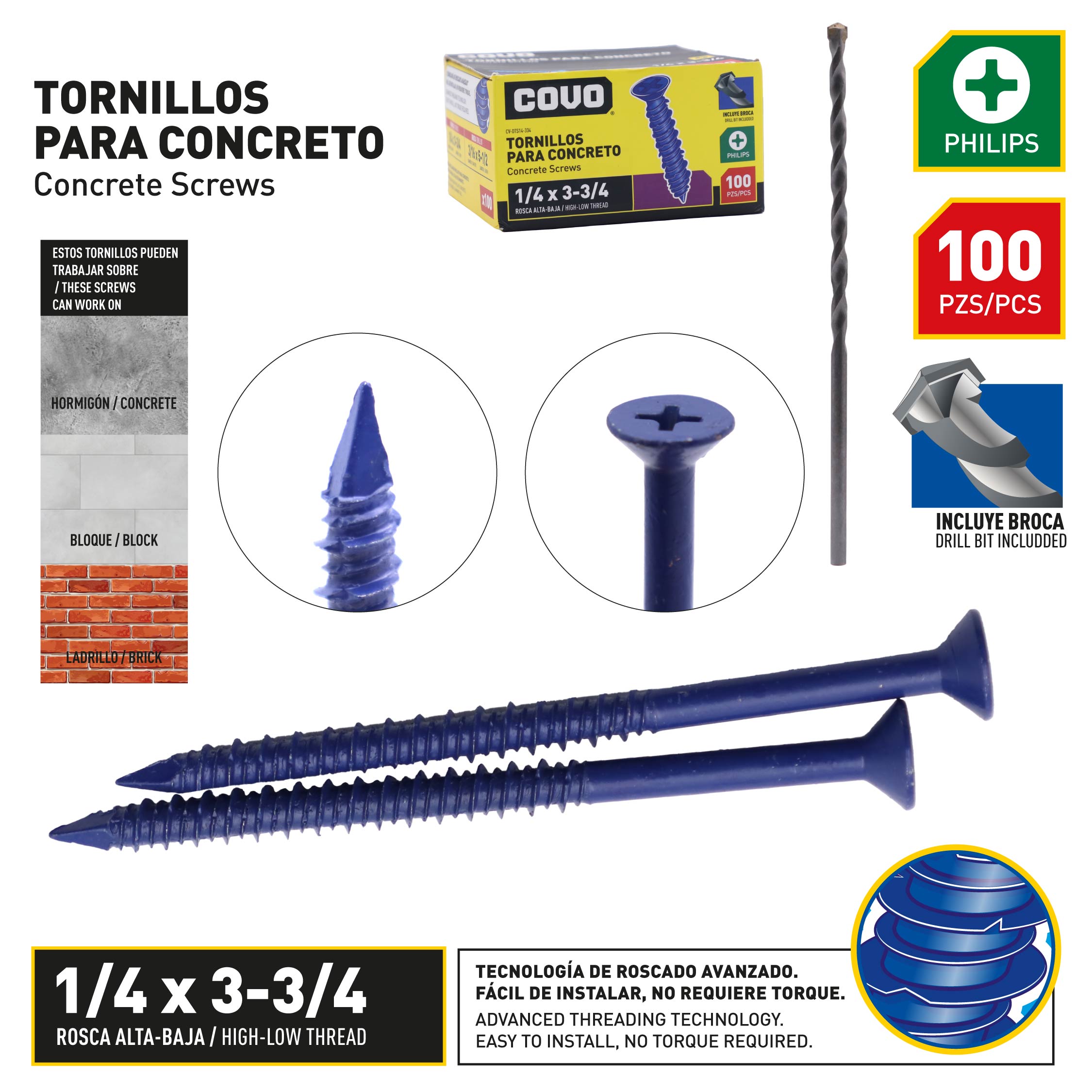 9. COVO 1/4 in. x 3-3/4 in. Phillips Head Concrete Screw