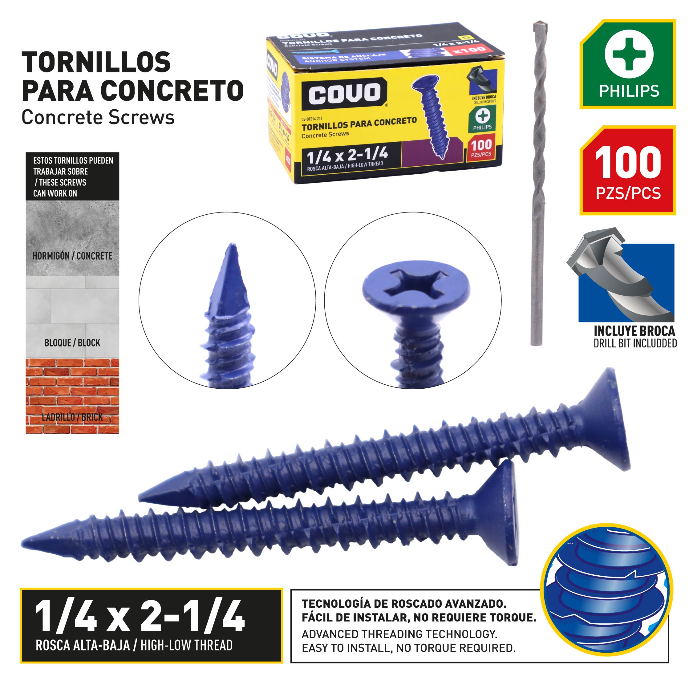 9. COVO 1/4 in. x 2-1/4 in. Phillips Head Concrete Screw